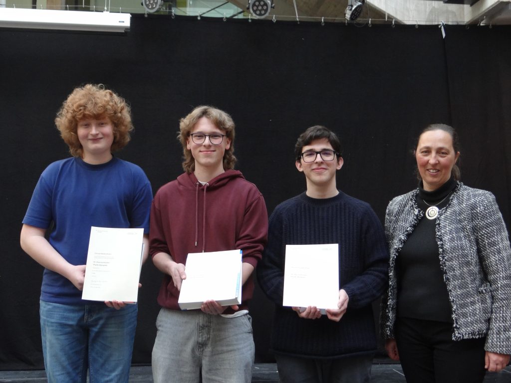 Unsere Schule war heuer Austragungsort des Kärntner Landeswettbewerbes der 45. Österreichischen Physikolympiade 2026. Insgesamt neun Jungphysiker aus ganz Kärnten traten am 3. März 2026 beim Kärntner Landeswettbewerb gegeneinander an und stellten dabei ihr umfangreiches physikalisches Wissen unter Beweis. Bei der Bearbeitung der Aufgaben zum Dopplereffekt, zu verschiedenen Arten von Sonnenfinsternissen sowie zu Mühlrädern und Transformatoren rauchten die Köpfe, war doch auch die eine oder andere physikalische Kopfnuss mit dabei. Unsere drei Teilnehmer konnten sich dabei gegen die starke Konkurrenz durchsetzen.