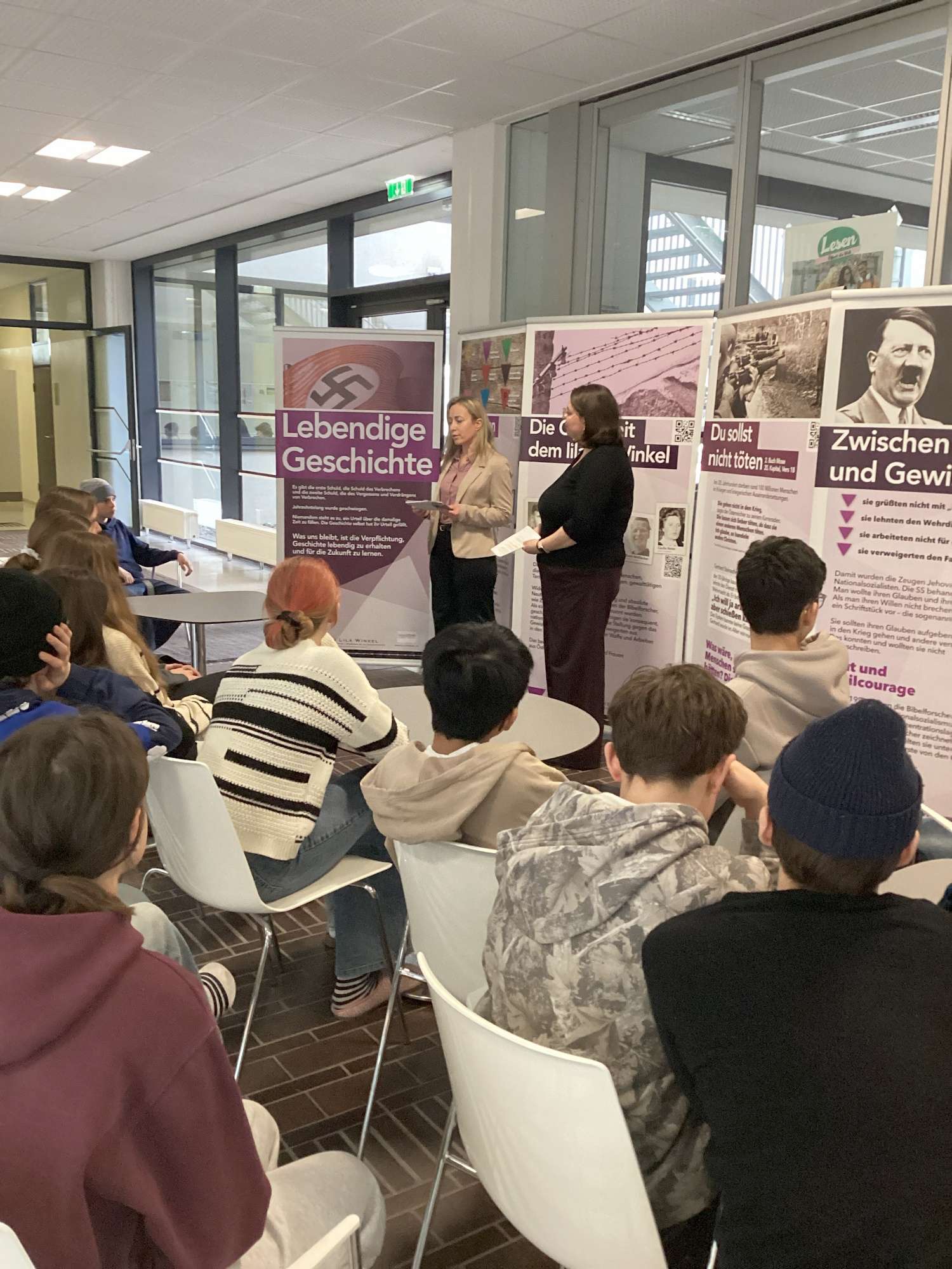 Die Ausstellung thematisiert die Verfolgung von Zeugen Jehovas während der Zeit des Nationalsozialismus und erzählt anhand persönlicher Biografien bewegende und berührende Lebensgeschichten. Etliche Schulklassen haben im Zuge des Unterrichts die Ausstellung bereits besucht und im Rahmen spannender Führungen durch die Vermittlerinnen und Vermittler des Vereins Lila Winkel wertvolle Einblicke in dieses wichtige Kapitel der Geschichte erhalten. Die Rückmeldungen der Schülerinnen und Schüler zeigen, wie sehr die persönlichen Schicksale zum Nachdenken anregen und Geschichte greifbar machen.