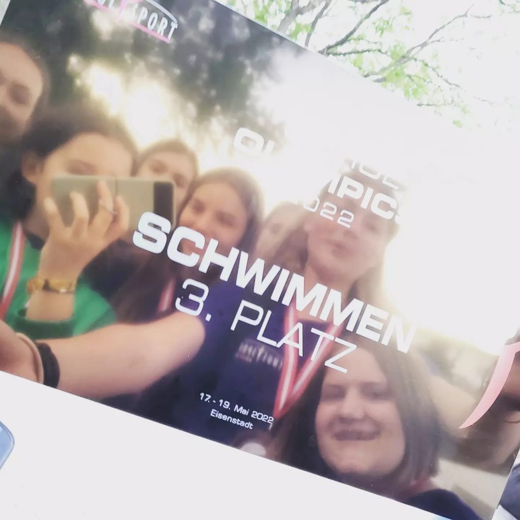 Nachdem sich die MĂ€dchen- und Jungsmannschaft schon den Landesmeistertitel in Schwimmen geholt hat, freut sich das Team der MĂ€dchen nun auch noch ĂŒber den Stockerlplatz bei den Schulolympics Bundesmeisterschaften – den 3. Platz! Auch das Team der Jungs zeigte mit dem 4. Platz eine hervorragende Leistung!