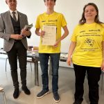 In einer vierstĂŒndigen Aufgabenphase stellten sie sich erfolgreich komplexen Fragestellungen aus den Bereichen Algebra, Zahlentheorie, Geometrie und Kombinatorik. Dank logischer und kreativer AnsĂ€tze konnten die Teilnehmer aus St. Martin wieder SpitzenplĂ€tze belegen und Preise nach St. Martin holen: Katarina Vukicevic qualifizierte sich mit ihrem 5. Platz erneut fĂŒr die Teilnahme am Bundeswettbewerb, Felix Rössler als 9. und Samuel Smetana als 15. bekamen fĂŒr ihre Leistung einen Preis verliehen.