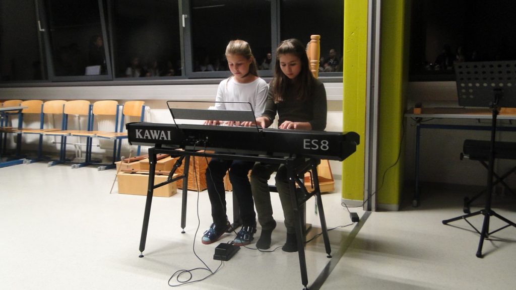 Die Nervosität war eine halbe Stunde vor unserem Auftritt sehr groß. Als wir dann unser erstes Lied sangen, und ich die strahlenden Gesichter meiner Eltern und Geschwister sah, überwog die Freude meine Aufregung. Ich war sehr erleichtert, dass unser vierhändiges Klavierstück „Jingle Bells“ uns so gut gelang. Auch unser Theaterstück machte mir einen Riesenspaß.