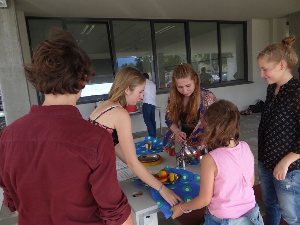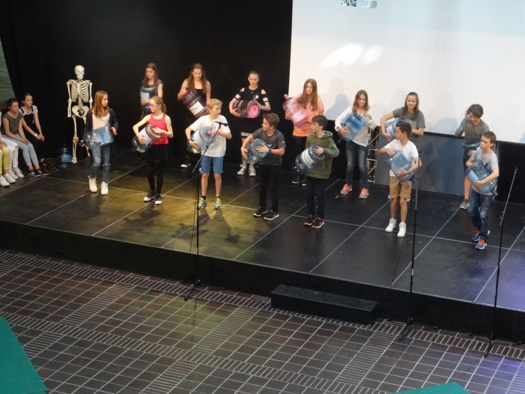 Als Auftakt gaben unsere Akteure ungewöhnliche Performances auf der Bühne und in der Aula zum Besten – mit Tanz, Akrobatik, Wasserflaschen, Bodypercussion, ja sogar ein Skelett hatte seinen Auftritt. Im Anschluss daran lockten zahlreiche Stationen: naturwissenschaftliches Experimentieren zum Thema Mechanik, eine Schnitzeljagd mit QR-Codes, Interessantes am Computer sowie Sportliches im Turnsaal. Die Schulband begeisterte ebenso wie (Trick-)Filme über Flaschenpost oder Plattentektonik. Eine umfangreiche Ausstellung über Migration und Navigationsinstrumente zeigte wiederum, wie man Geschichte und Physik kombinieren kann. Außerdem konnten die Besucherinnen und Besucher ihre Darstellung von „Human Sculptures“ fotografieren lassen. Bei einem Tierfortbewegungsquiz durfte man sein Wissen unter Beweis stellen. Wer nach all dem abwechslungsreichen Programm Hunger bekam, stärkte sich am Moving Buffet, das auch in Bewegung war. Wir wollten (uns) bewegen und das haben wir getan!