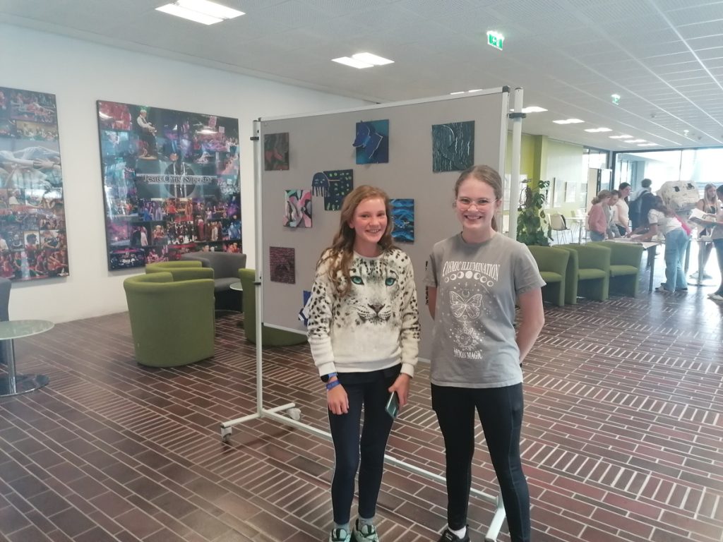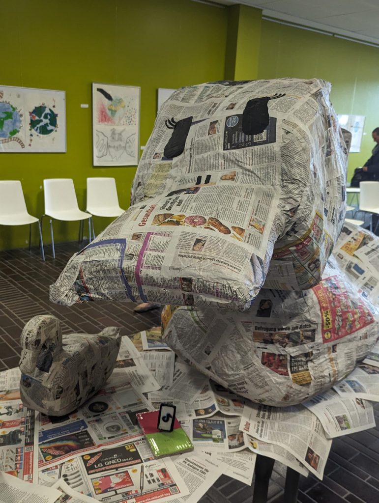 Down on the ground floor a duck took centre stage. This huge creation, made out of newspapers, pointed the way to the exhibition “Know the Information Flow”. The second and fourth forms (Digital Education, Technology & Design) worked together on this informative project. Fake news was discussed and newspapers created with fake and real news. Students also visited a real newspaper office before creating their own newspapers, which were available for purchase on the evening. Definitely a cool project!!