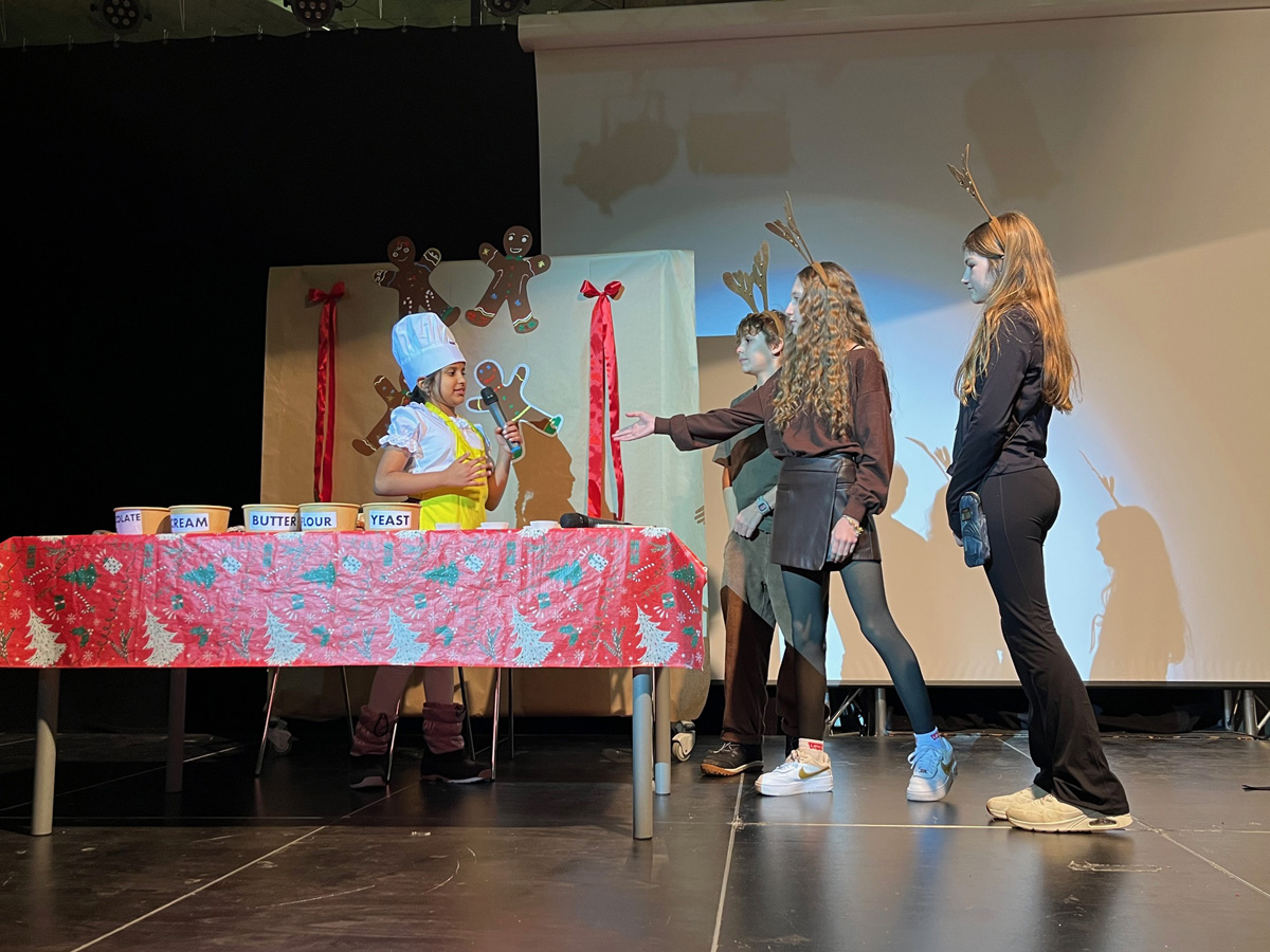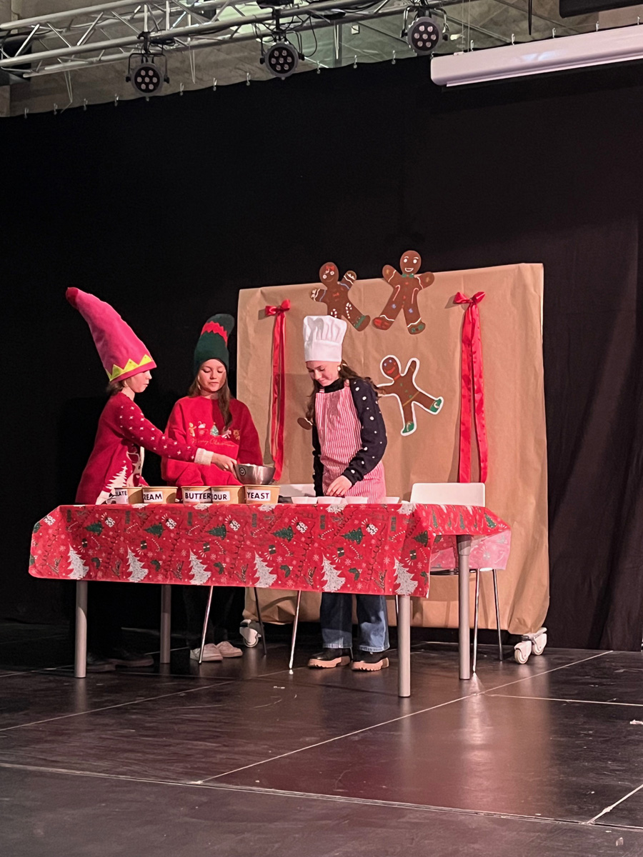 The preparations involved sewing their own elf hats in the handicraft lessons, painting scenery in the art lessons, learning their lines and rehearsing on and off the stage.
